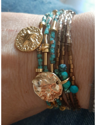 Bracelet multi-rangs 3 tours pouvant se porter en collier.