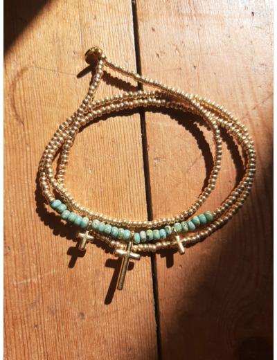 Bracelet multi-rangs 3 tours pouvant se porter en collier.