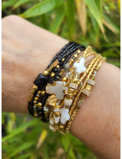 Notre MULTIRANGS 6 Tours multitude de perles gold 24k adopte une version hivernale avec des intégrations perles de Jaspe!