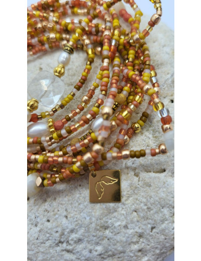 Multitude de perles tons orangé, orange, ocre, gold, ( environ 1450), des facettes , à porter toute l’année .