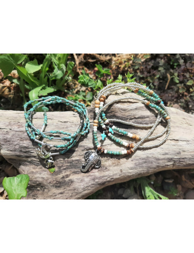 Bracelet multi-rangs 4 tours pouvant se porter en collier, sur fil élastique très résistant et très facile à mettre.