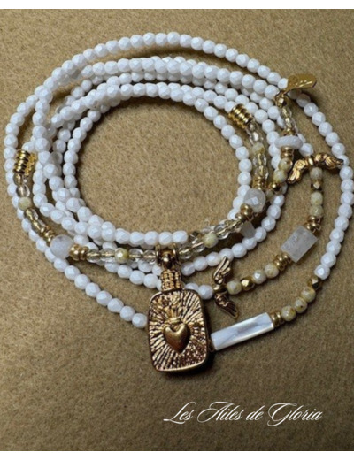 Bracelet multi-rangs 6 tours pouvant se porter en collier/ Sautoir, monté sur fil en silicone élastique très résistant.