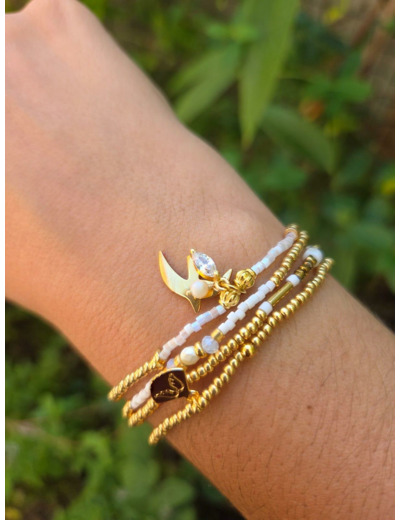 Ensemble monté sur fil en silicone élastique résistant et adaptable à tous les poignets. Entièrement fait à la main dans notre Atelier en TOURAINE