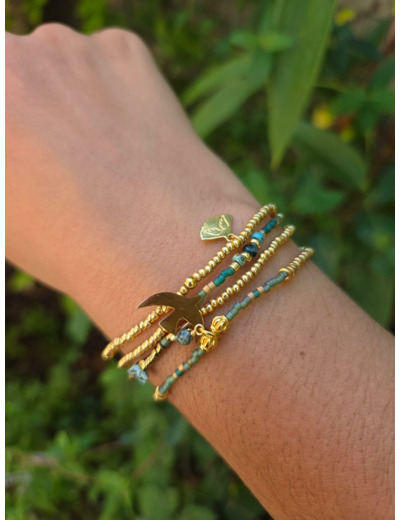 #hirondelle #quartzrose #turquoise #gold #bracelet