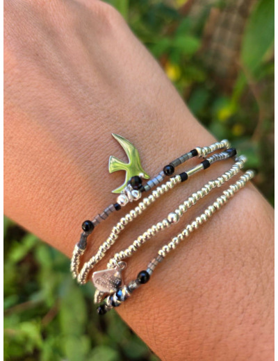 Ensemble monté sur fil en silicone élastique résistant et adaptable à tous les poignets. Entièrement fait à la main dans notre Atelier en TOURAINE