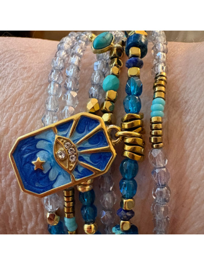 Bracelet multi-rangs 6 tours pouvant se porter en collier/ Sautoir, monté sur fil en silicone élastique très résistant.