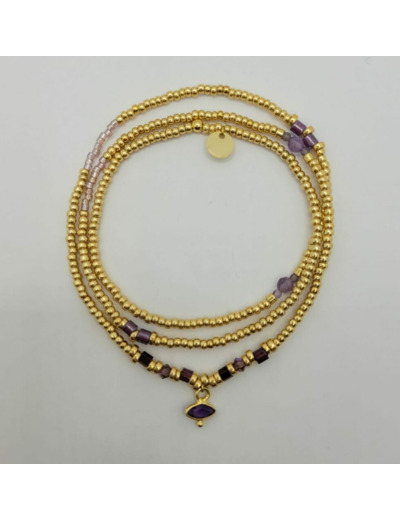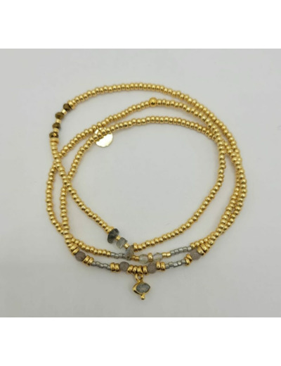 Bracelet multi-rangs 3 tours pouvant se porter en collier.