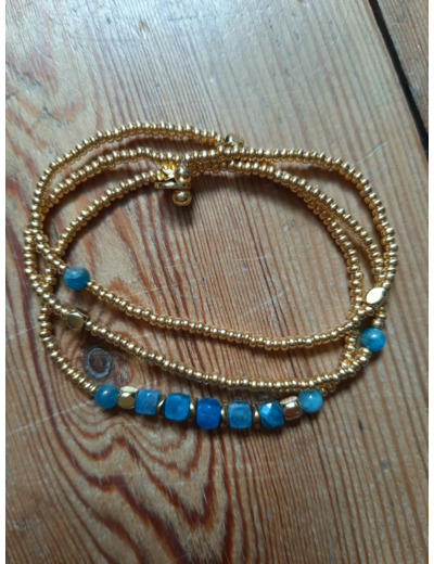 Bracelet multi-rangs 3 tours pouvant se porter en collier. Sur lien élastique très résistant et facile à mettre.