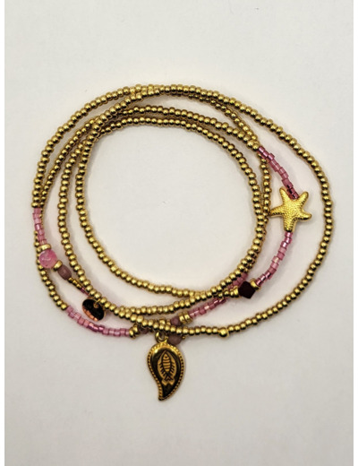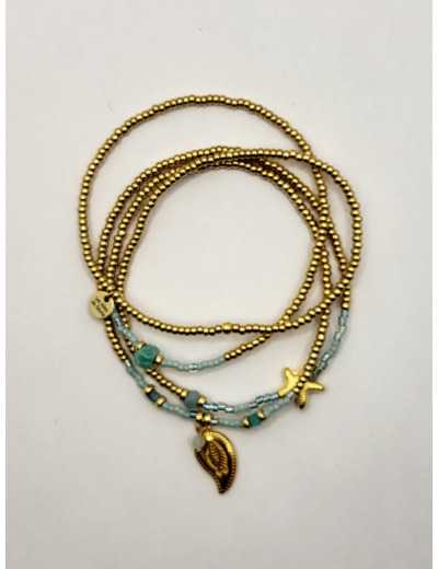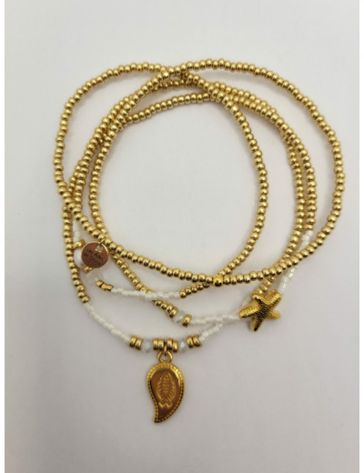 Bracelet multi-rangs 4 tours pouvant se porter en collier. Multitude de perles rocaille Doré plaqué or (24k) ,