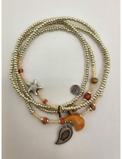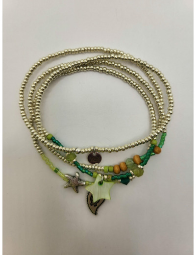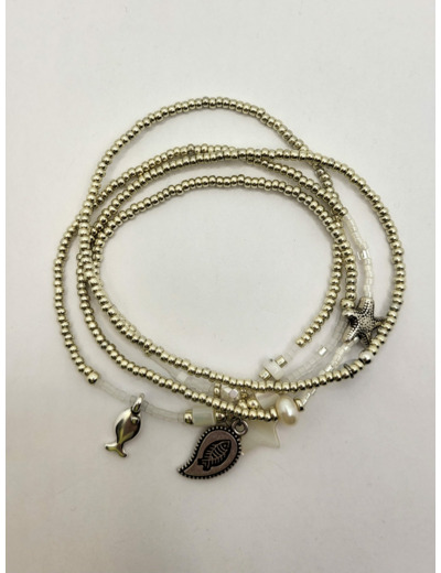 Bracelet multi-rangs 4 tours pouvant se porter en collier. Multitude de perles rocaille argenté