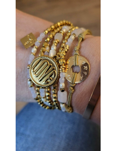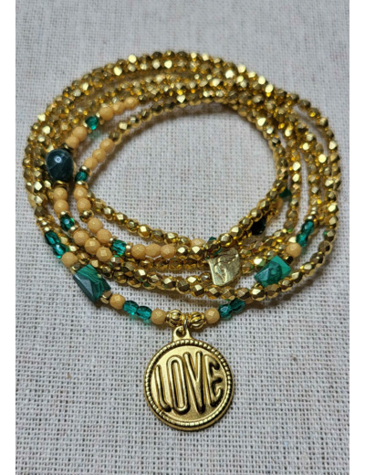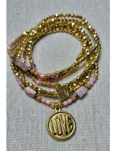 Multitude de perles facettés gold plaqué or, Médaille ronde 18cm LOVE doré en Acier inoxydable