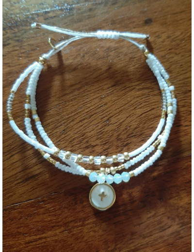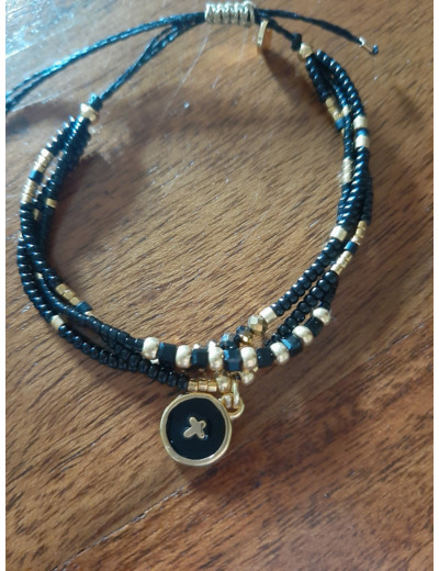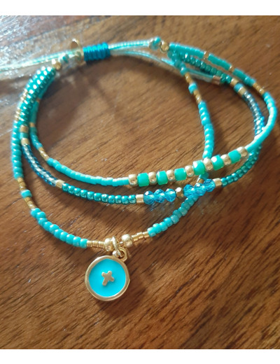 Une croix medaillon epoxy et perles miyuki, gold doré 24k, perles de verres colors…..elles n’attendent que vos poignets