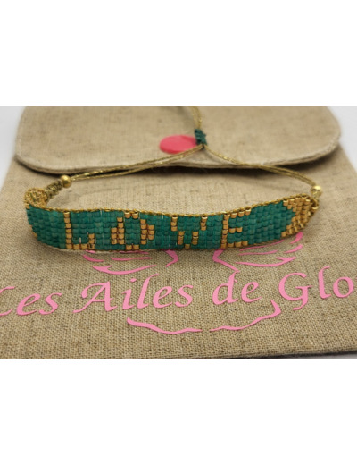 Notre petit lien tissé « LOVE » , il sera parfait en accumulation sur votre poignet.