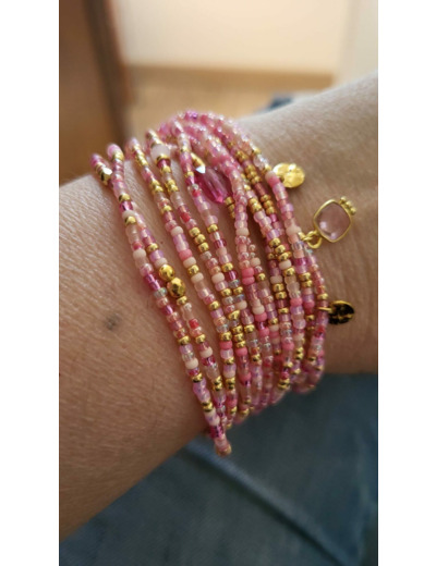 Notre MULTIRANGS « Boréale » 12 Tours multitude de perles tons violet, vert, rose ( environ 1450), des facettes , adopte une version de saison .