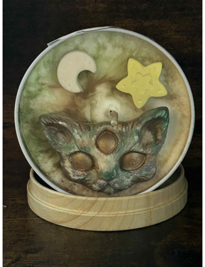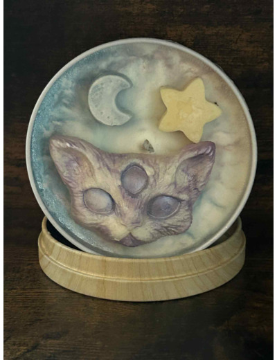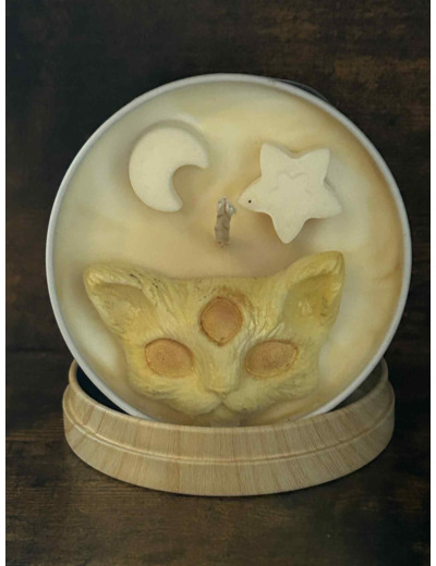 Ne vous fiez pas à son allure paisible : ce chat est le Gardien des Songes. Découvrez cette bougie unique, où la puissance féline rencontre la magie du ciel nocturne.