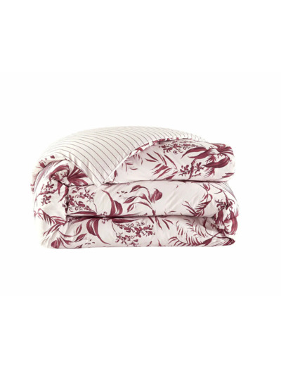Elégance à la française, la housse de couette en percale de coton biologique 80 fils/cm² propose une face imprimée aux motifs végétaux complété par une rayure fine au dos.