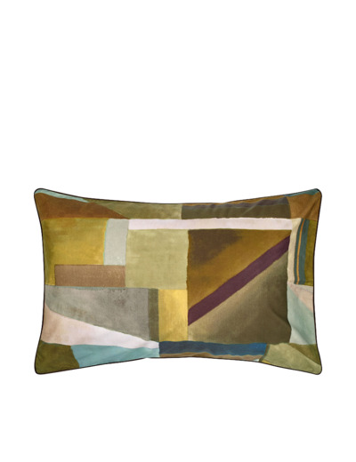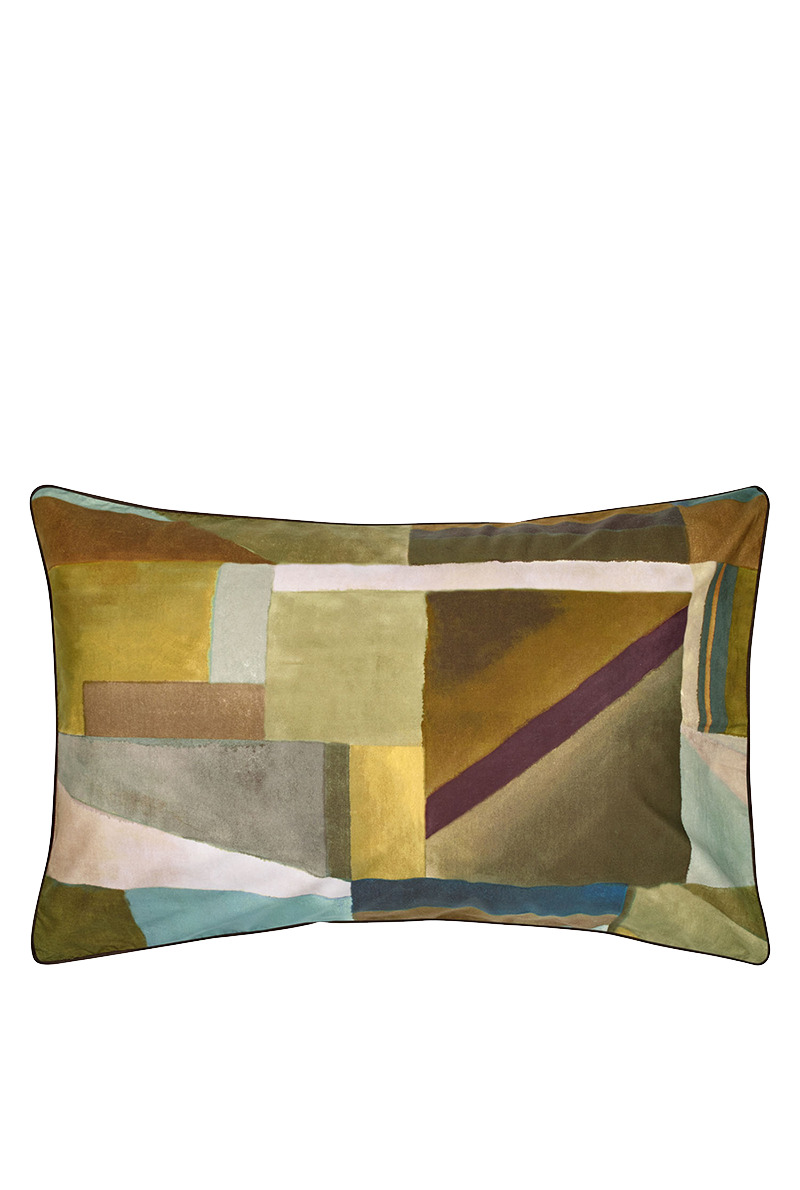Formes abstraites, réalisées dans des tons naturels avec des couleurs à effet délavé. Les taies d'oreiller Alphonse au design géométrique sont imprimées numériquement sur 80 fils / cm² de percale de coton, avec un jeu au dos dans les tons ocre. Les taies d'oreiller sont finies avec un passepoil de couleur marron. Les couleurs révèlent un mélange doux et harmonieux de couleurs chaudes, telles que des verts luxuriants et des couleurs plus froides telles que le jade clair et les roses pâles.