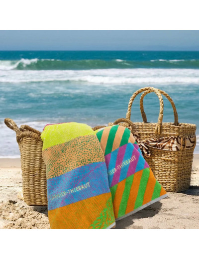 Relaxez-vous avec les draps de plage colorés Garnier-Thiebaut, indispensables pour une journée à la plage ou au bord de la piscine !