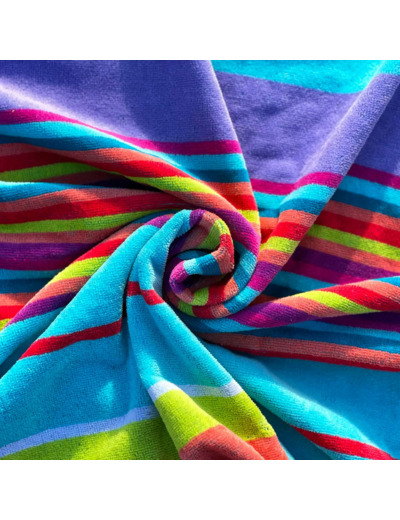 Drap de plage 100% coton damassé 450 g/m², avec un recto velours pour plus de douceur et un verso bouclettes pour le confort.