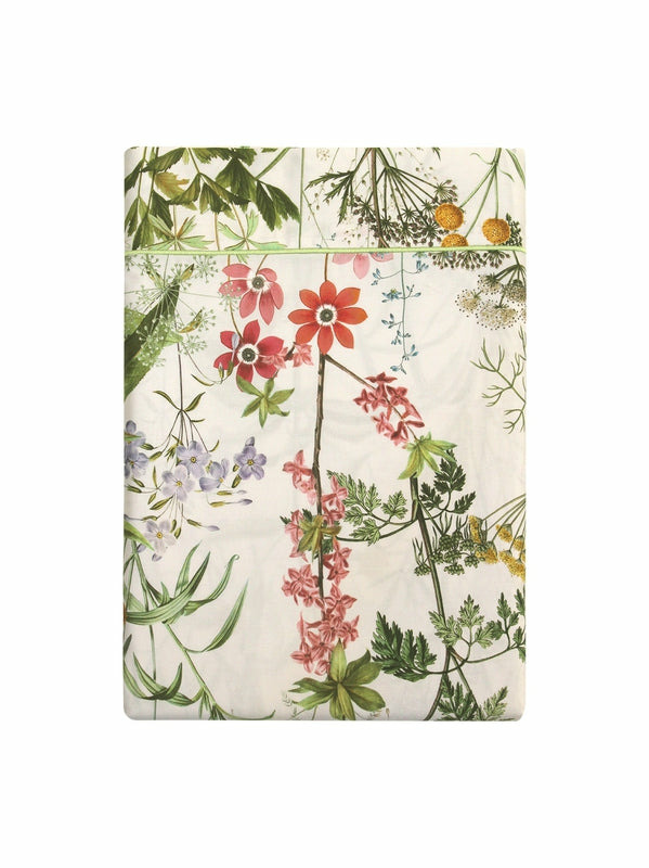 Parement rapporté de 8cm en haut du drap avec finition bourdon couleur vert lichen sur l'ourlet.