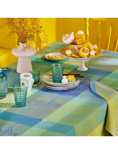 Qualité made in France. Linge des Vosges. Nappe 100% coton damassée (jacquard). Recouverte de 2 fines couches d'enduction acrylique, elle se nettoie facilement d'un simple coup d'éponge !
