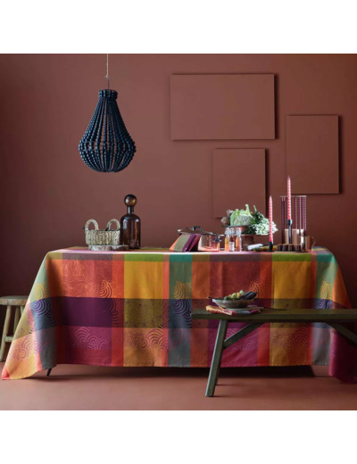 Qualité made in France. Linge des Vosges. Nappe 100% coton damassée (jacquard). Recouverte de 2 fines couches d'enduction acrylique, elle se nettoie facilement d'un simple coup d'éponge !