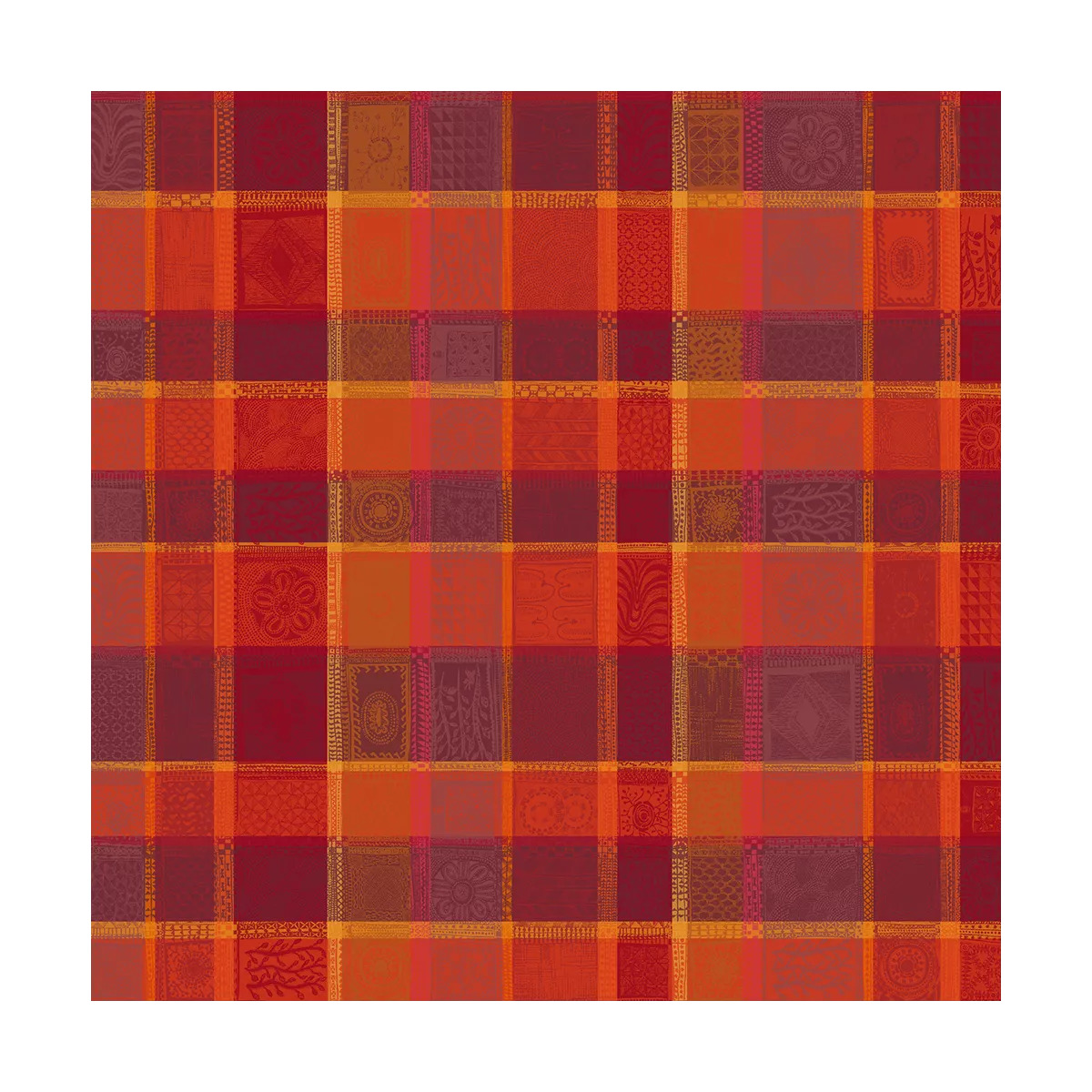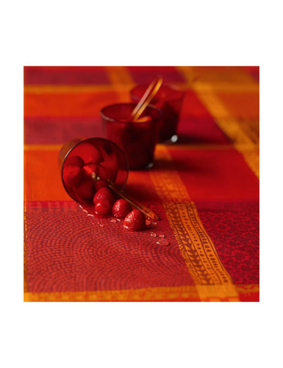 Qualité made in France. Linge des Vosges. Nappe 100% coton damassée (jacquard). Recouverte de 2 fines couches d'enduction acrylique, elle se nettoie facilement d'un simple coup d'éponge !