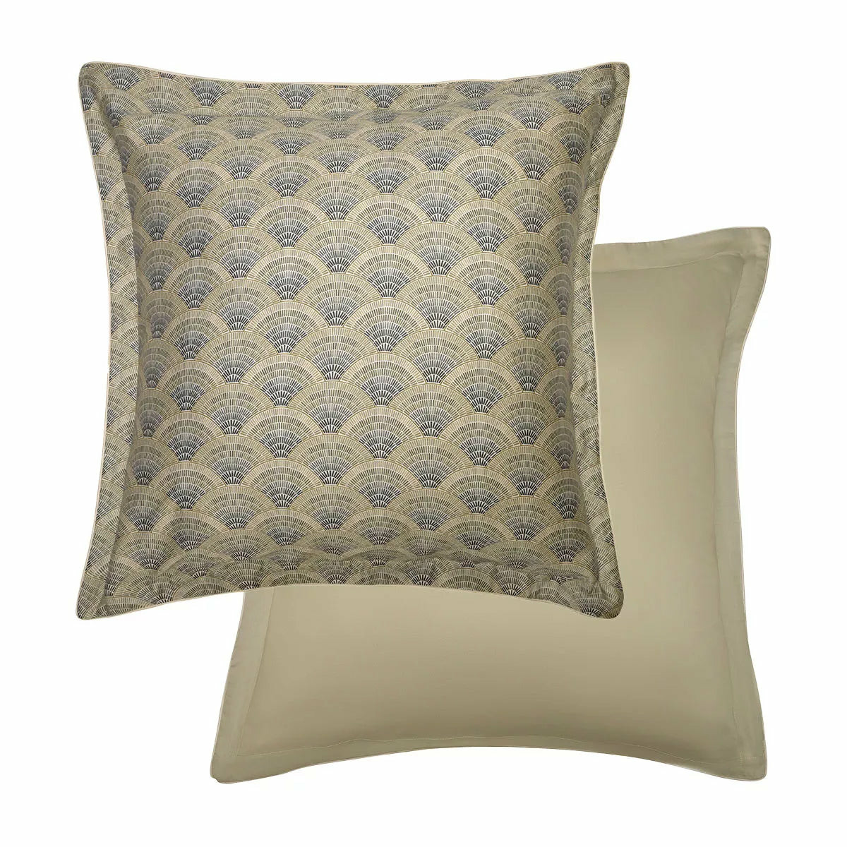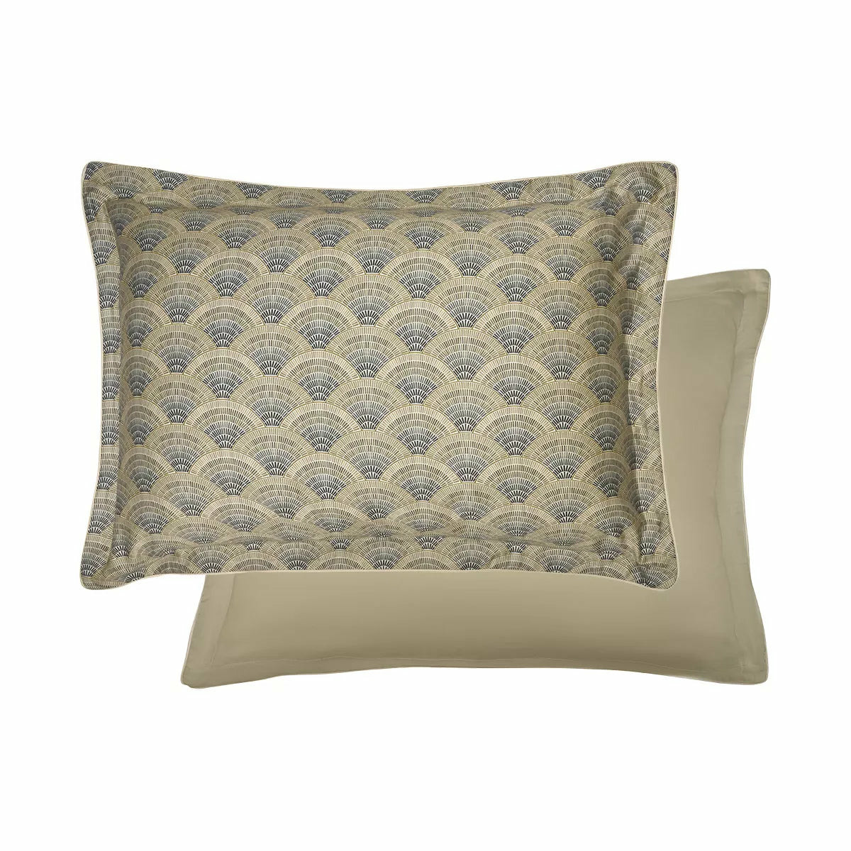 Taie d'oreiller imprimée sur satin de coton 120 fils/cm², 100% coton, doux et soyeux. All-over d'éventails composés de coups de pinceau réalisés à l'aquarelle dans des tons beige, kaki et bronze.