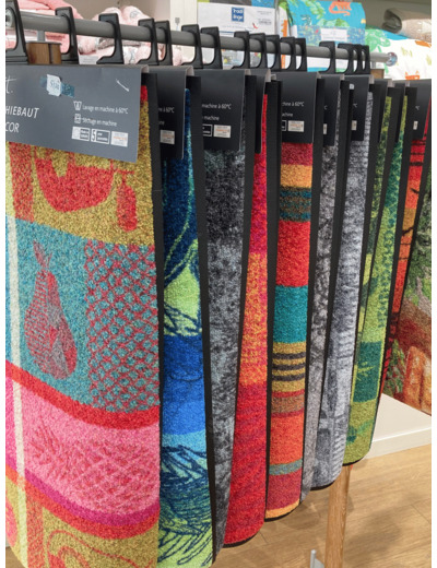 Tapis décor lavable, idéal pour les personnes allergiques et les propriétaires d'animaux. Plat et antidérapant. Brillance et tenue des couleurs (fibres nylon résistantes à la lumière). Adapté au chauffage au sol.