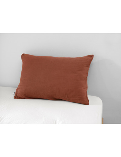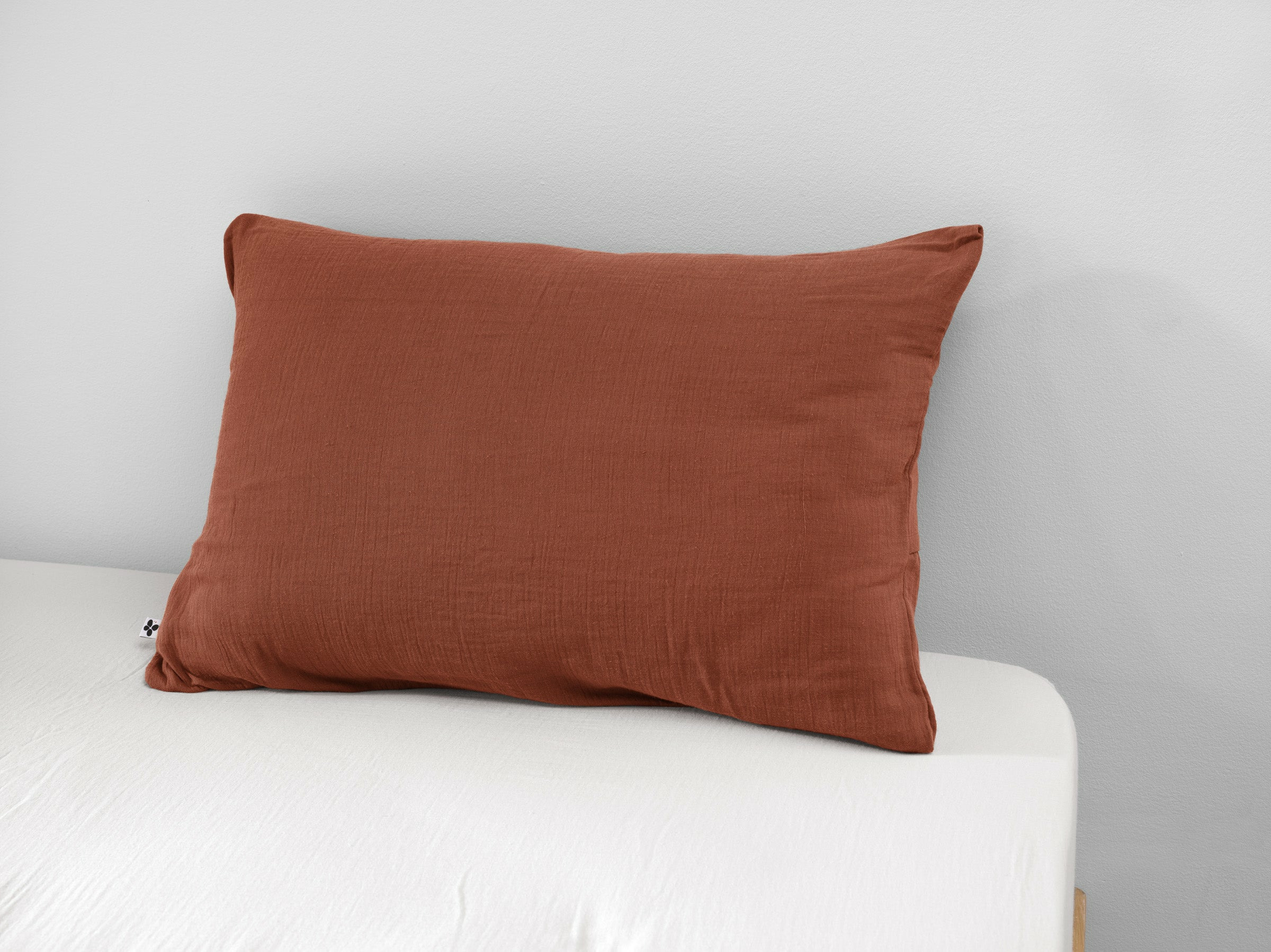Taie d'oreiller unie en gaze de coton carré ou rectangle, disponible en plusieurs coloris. 100% Coton.