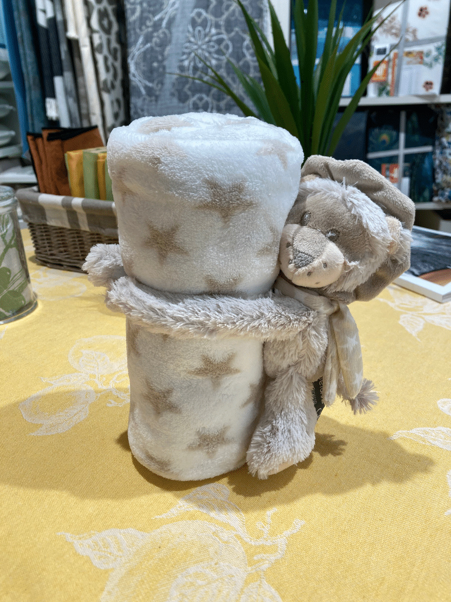 L'adorable lion de la collection Pelu Plaid par Sud Etoffe ravira à coup sûr les petits en leur apportant un formidable compagnon de jeu en plus de leur tenir chaud grâce au plaid qui accompagne le doudou ! Lavable à 30°.