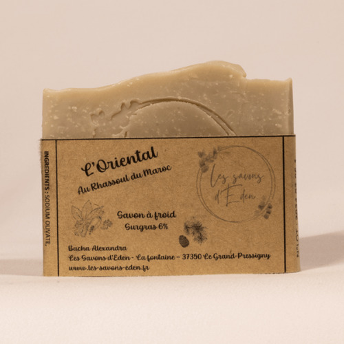 Le savon pour peau grasse au Ghassoul "L'Oriental" est réalisé avec la méthode de saponification à froid. Ce procédé préserve les propriétés des ingrédients 100 % végétaux, tels que les huiles et beurres, pour garantir un soin naturel, doux et efficace. Enrichi en glycérine hydratante, il nourrit tout en respectant l'équilibre naturel de votre peau.