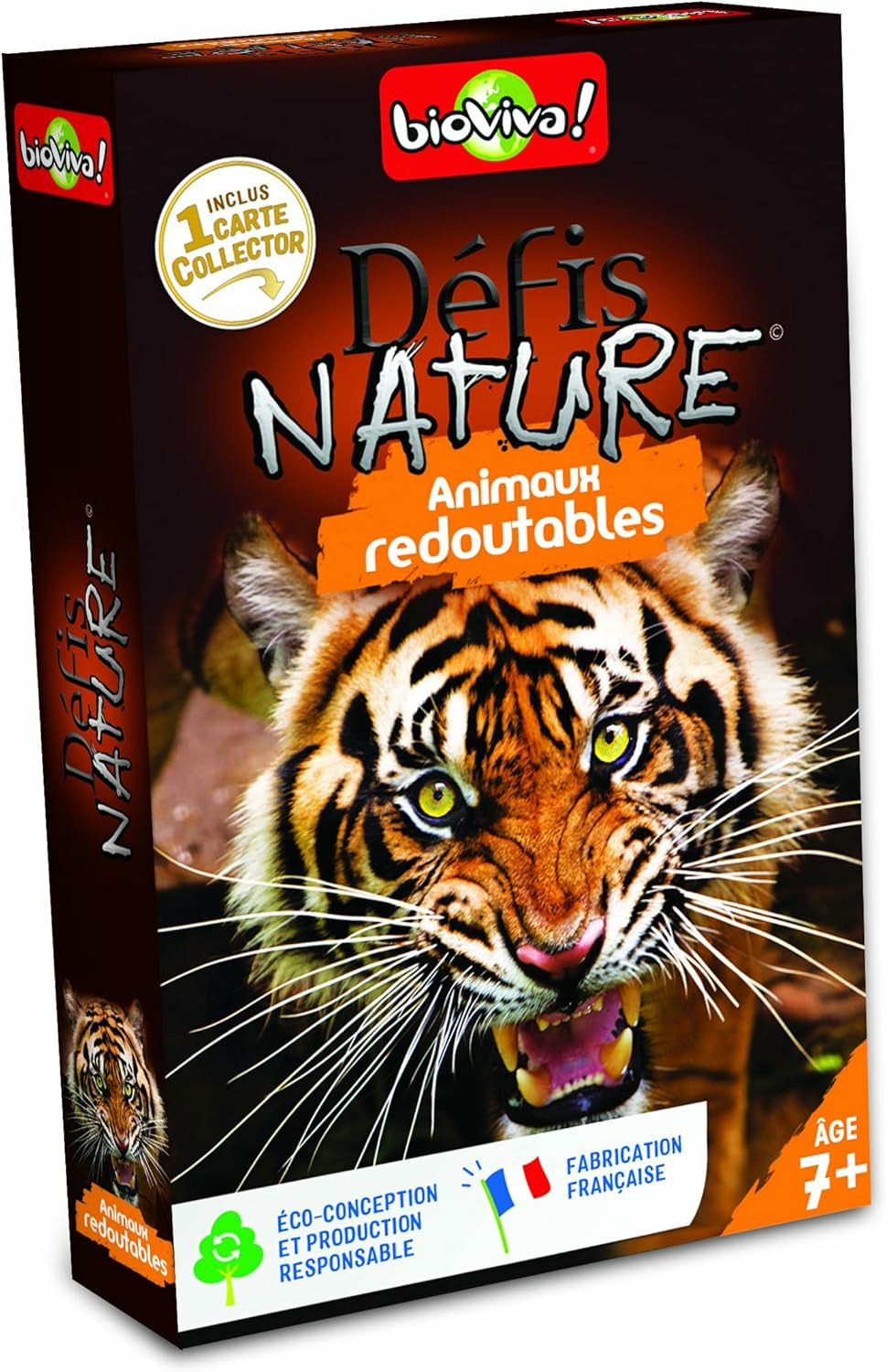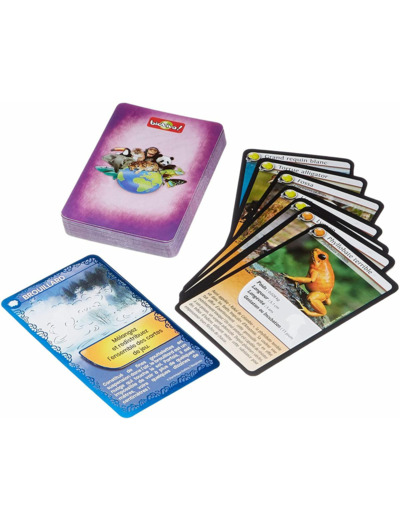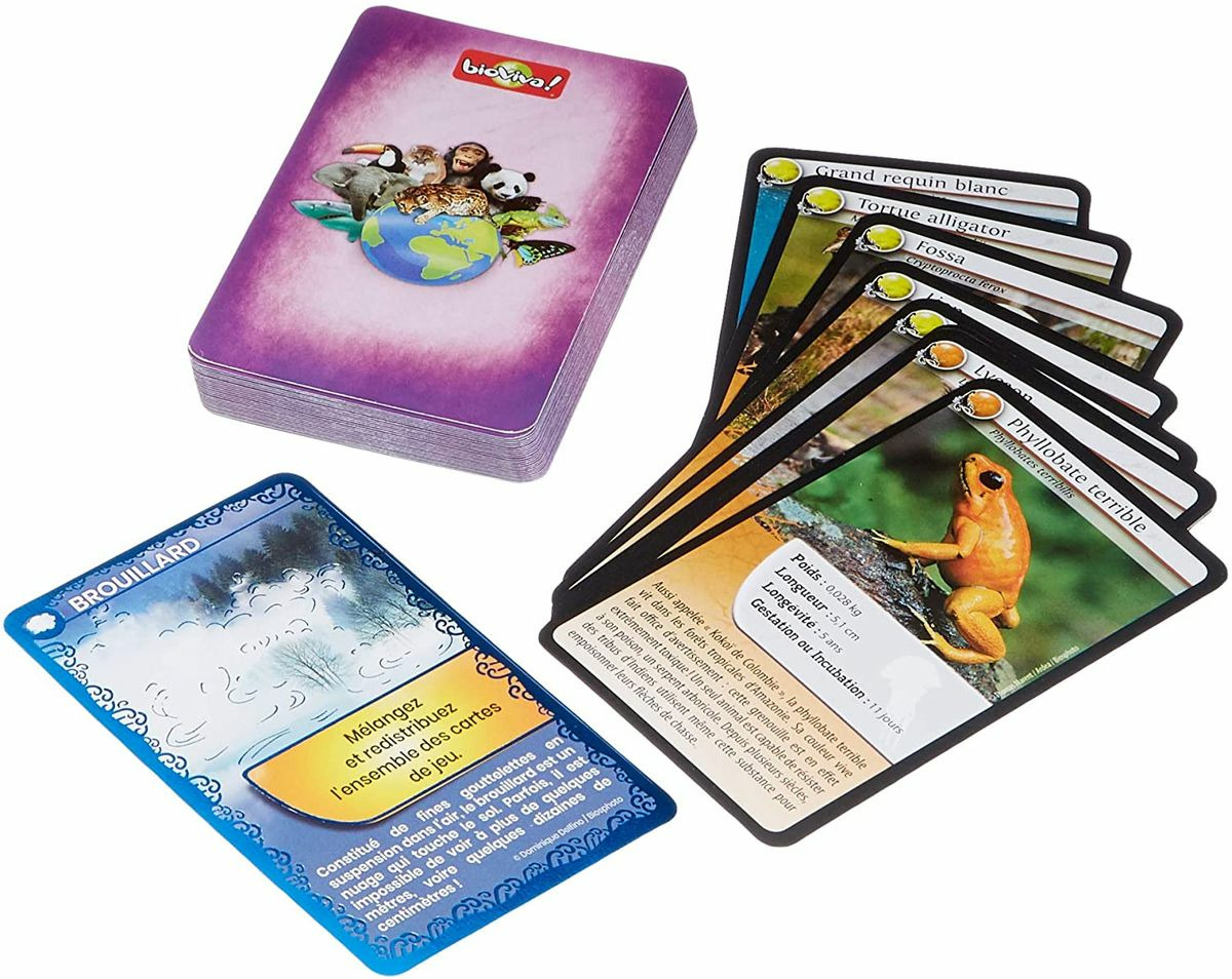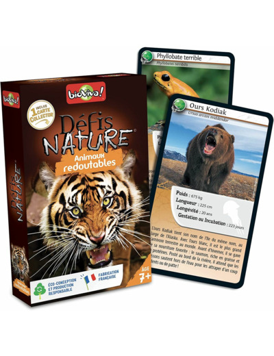 Défis Nature vous emmène à la rencontre des animaux les plus redoutables de notre planète. Au travers de cartes superbement illustrées, découvrez les particularités des espèces animales les plus répandues comme les plus menacées, puis pariez sur les points forts de vos animaux pour collecter toutes les cartes du jeu et remporter la partie. Alors, prêts à relever le défi ? De 2 à 6 joueurs. Dès 7 ans. Fabriqué en France.