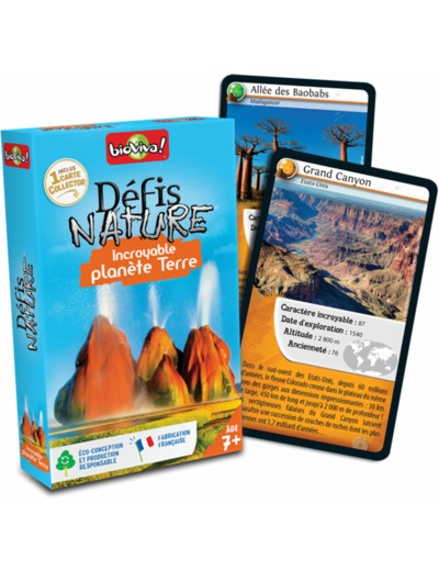 Partez à la découverte des splendeurs de la nature. Pariez sur les points forts de vos sites naturels et retournez la situation à l’aide des lieux les plus surprenants pour remporter les cartes des autres joueurs. Alors, prêts à relever le défi? Fabriqué en France.