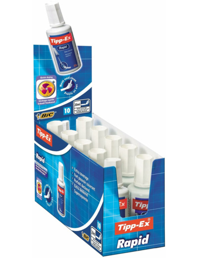 Tipp-Ex Rapid est un correcteur liquide de haute qualité qui corrige efficacement avec un fort pouvoir couvrant. Pratique, son applicateur en mousse permet une correction nette et précise. Avec 20 ml de fluide opaque, cette bouteille de correction peut en corriger des erreurs.