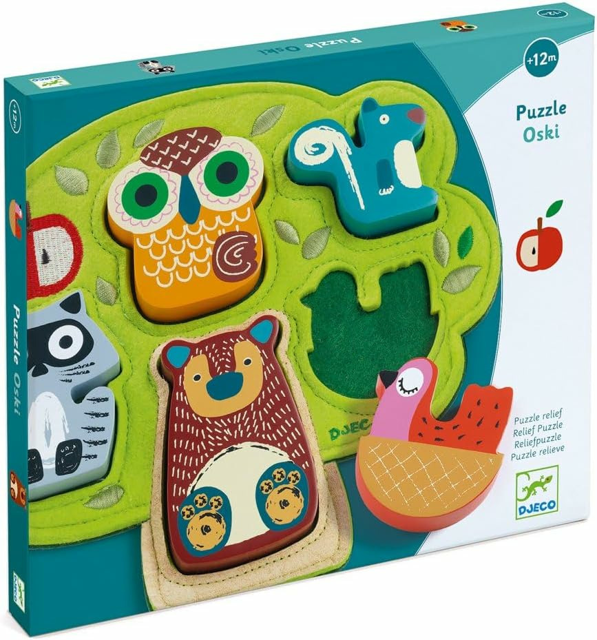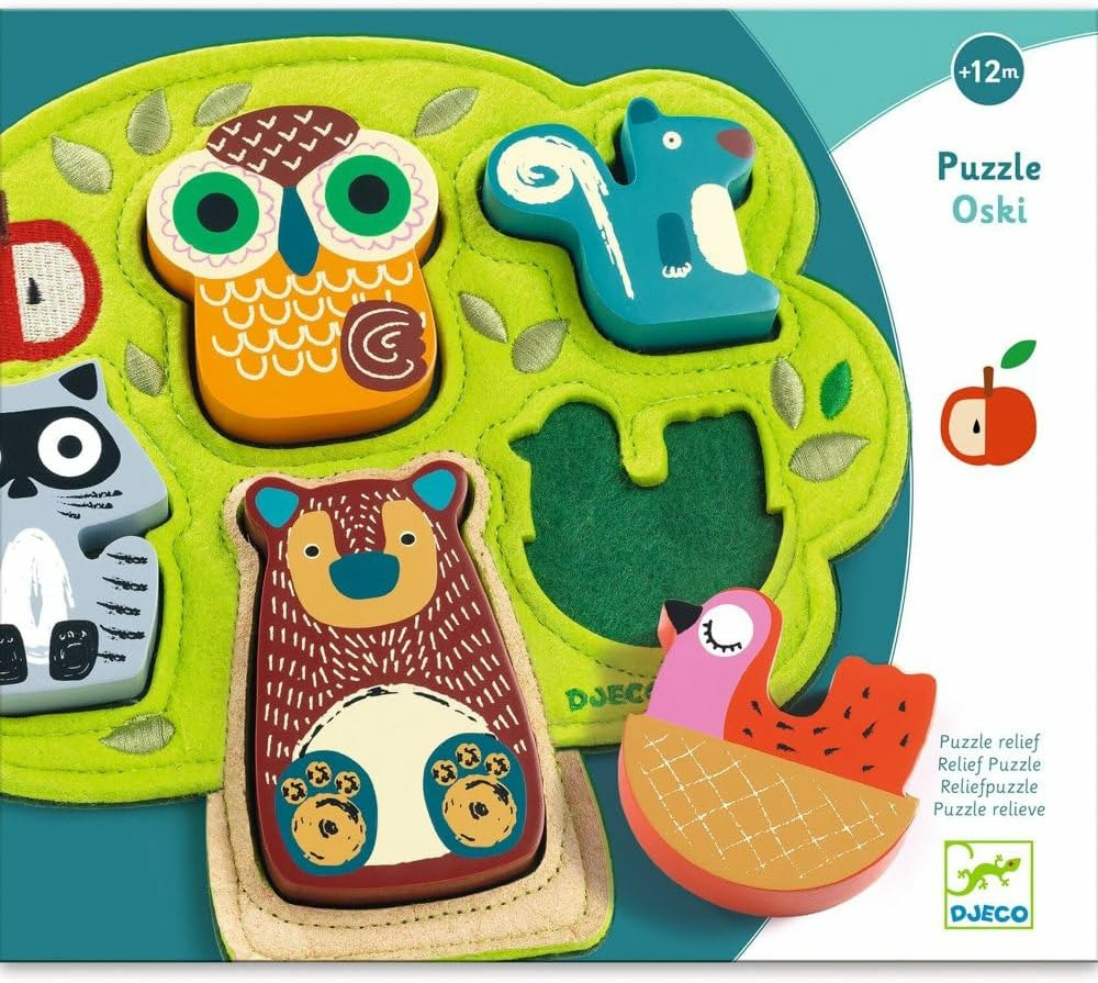 Puzzle emboîtable et puzzle unisexe pour enfant de la marque DJECO. Modèle : emboîtable Oski. Référence DJ01039