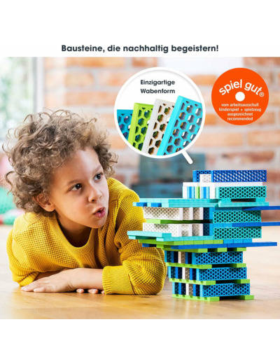 PARFAITS POUR CONSTRUIRE : bleu, vert, turquoise, bleu marine et blanc ! Les jouets de construction colorés pour enfants offrent des possibilités infinies de créativité et d'imagination. Préparez-vous à construire, à créer et à explorer !