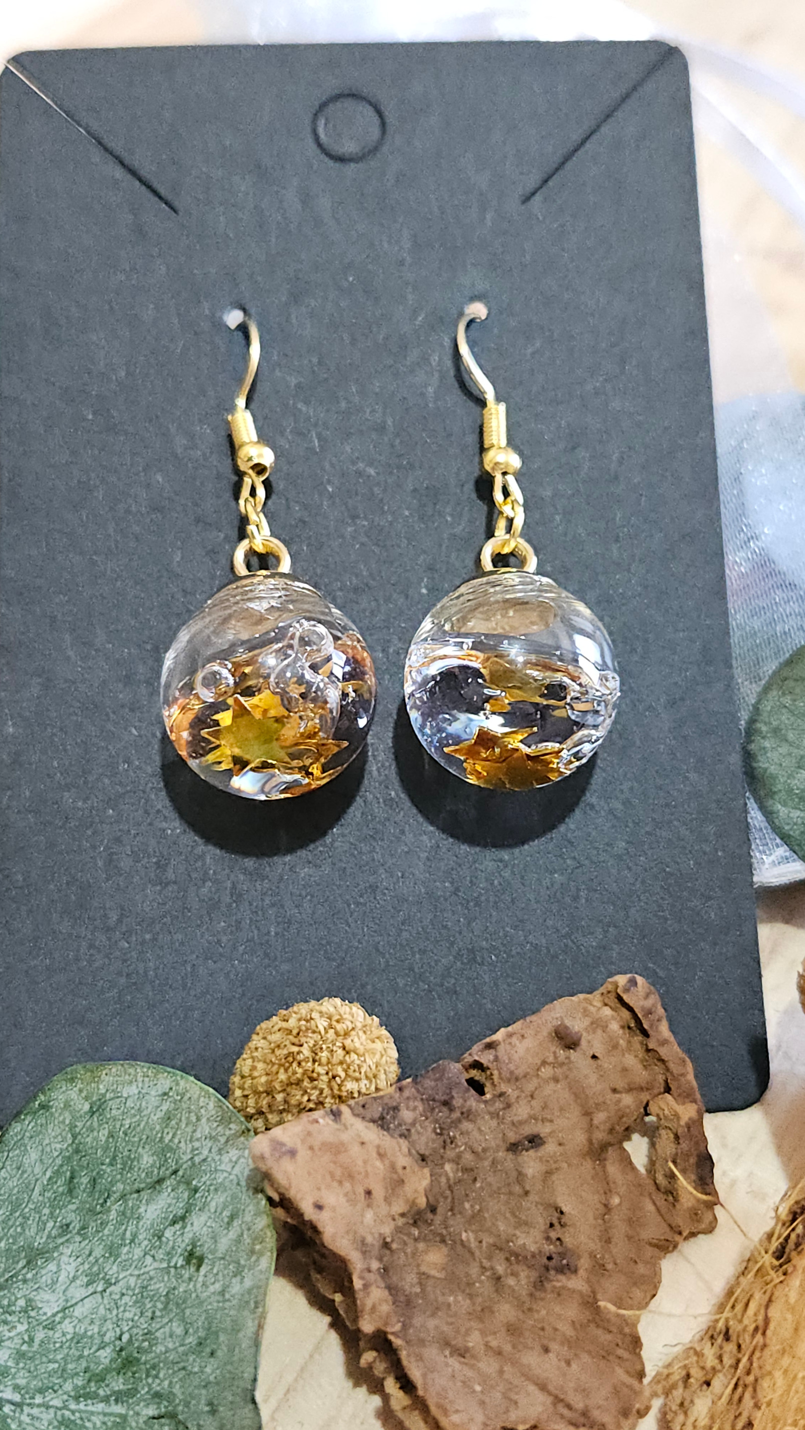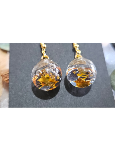 Les pendentifs en forme de bulles de verre cristallines renferment un petit univers unique : dans le cas présent, des étoiles dorées parce que vous êtes une star, non ?