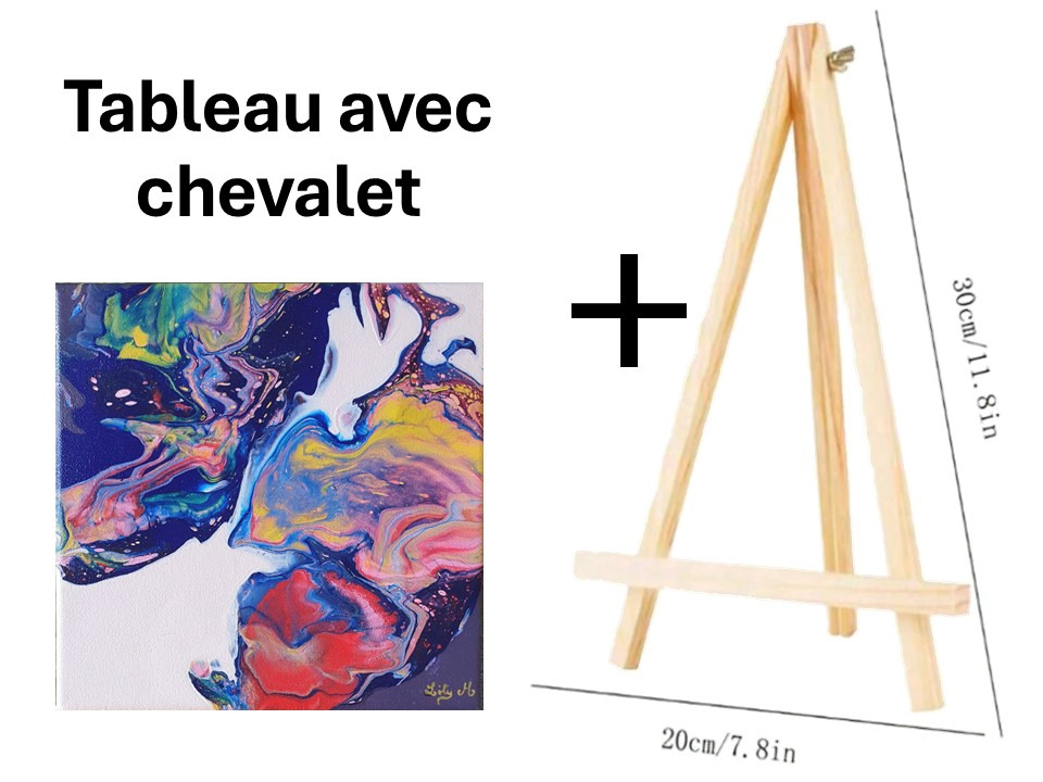 Ce tableau de format carré (20x20 cm) est idéal pour ajouter une touche d'originalité et de modernité à votre intérieur. Il peut être livré avec son mini-chevalet en bois naturel, vous permettant de l'exposer immédiatement sur un bureau, une étagère ou une table de chevet.