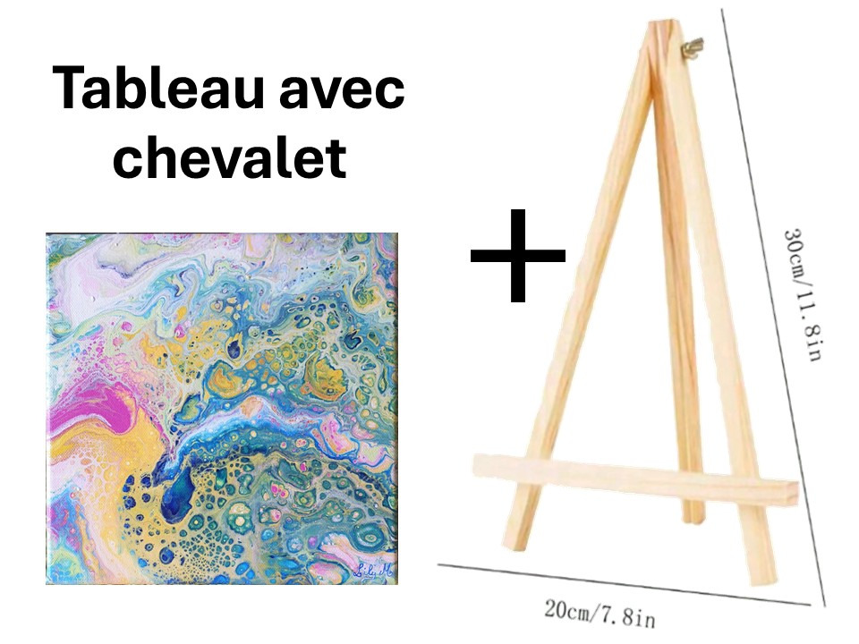 Ce tableau de format carré (20x20 cm) est idéal pour ajouter une touche d'originalité et de modernité à votre intérieur. Il peut être livré avec son mini-chevalet en bois naturel, vous permettant de l'exposer immédiatement sur un bureau, une étagère ou une table de chevet.