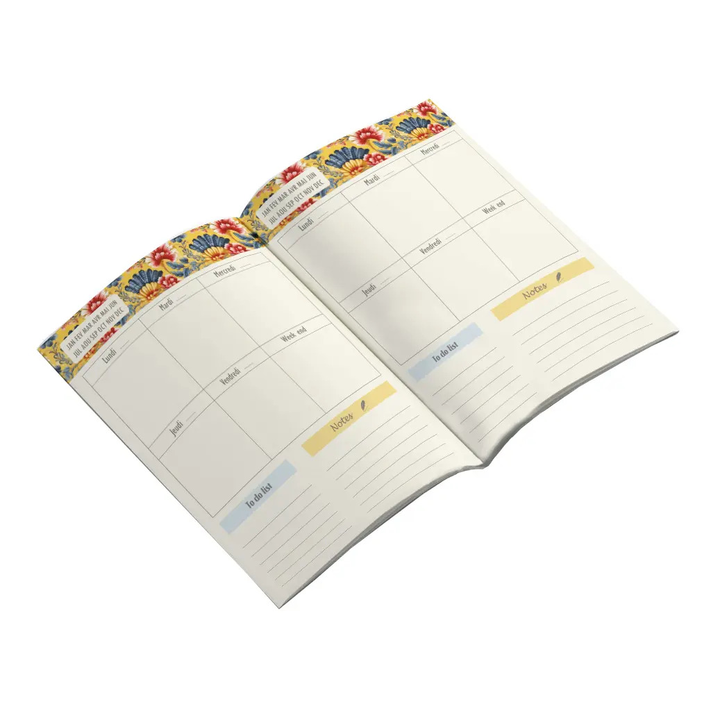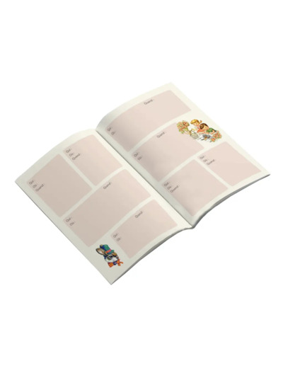 Un carnet A5 à remplir selon vos envies : recettes, lectures, voyages… chaque page est illustrée et pensée pour l’usage.