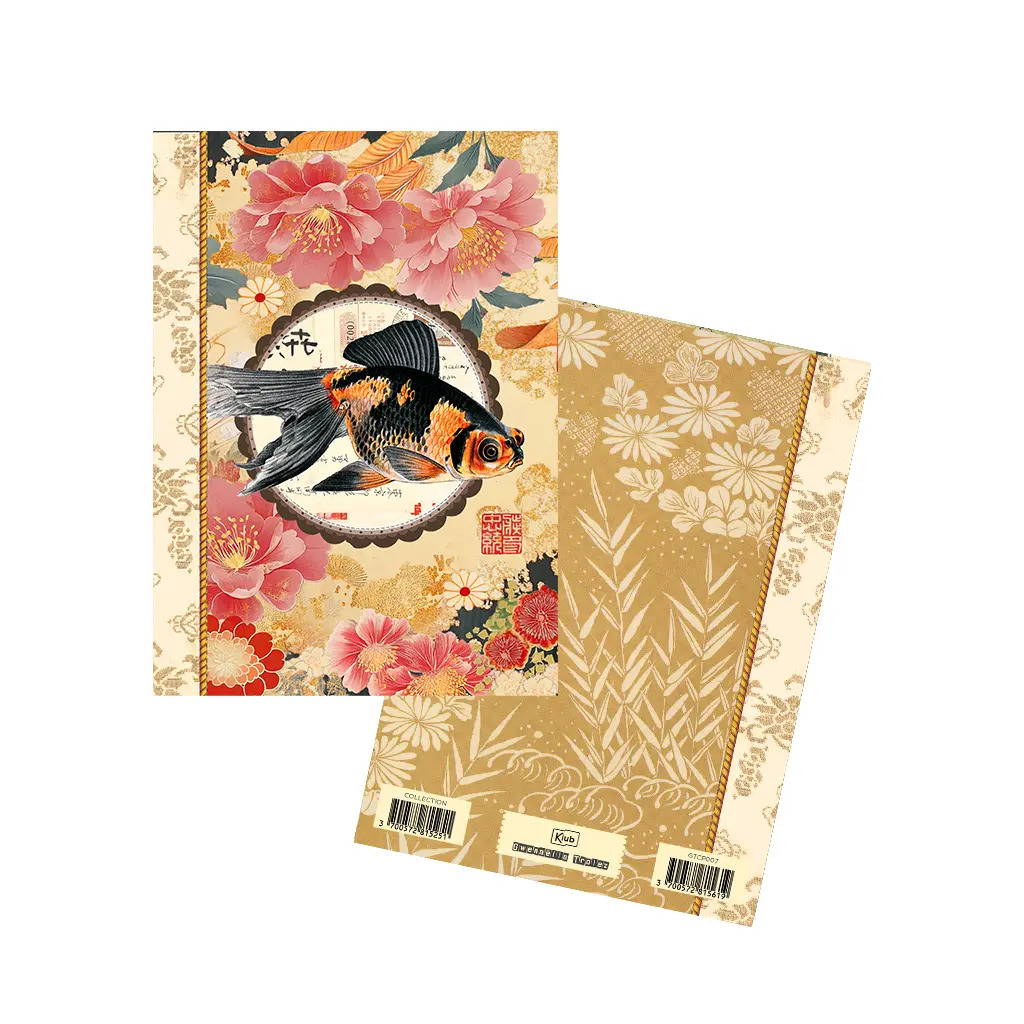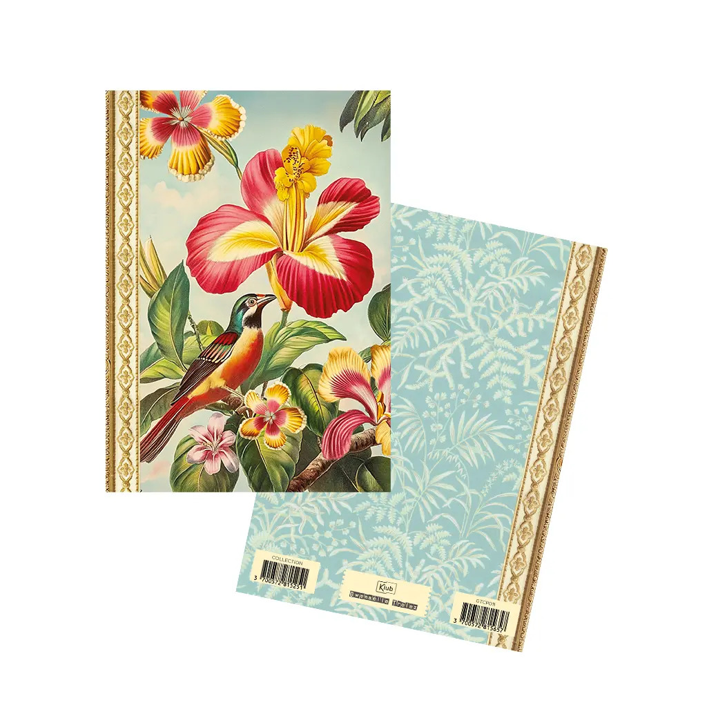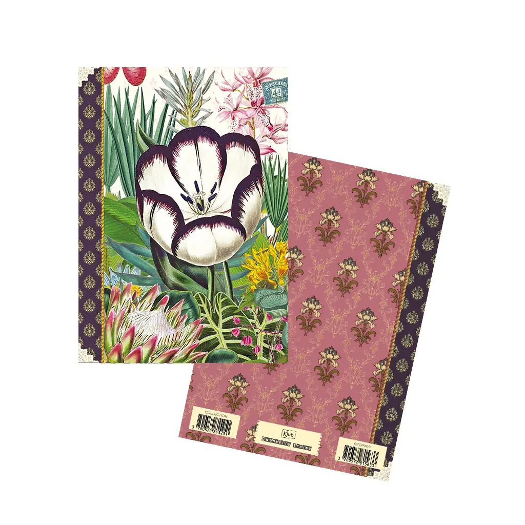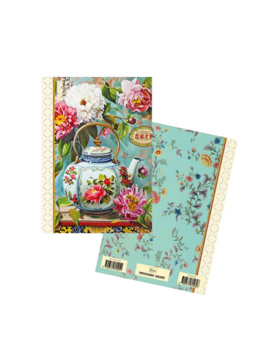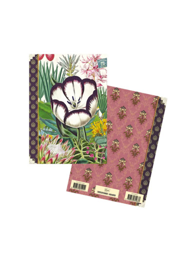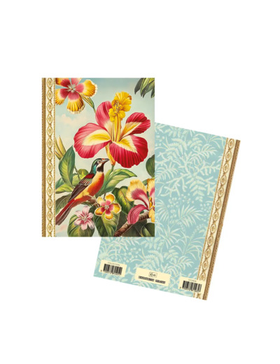 Format A6 portrait, 48 pages intérieures en 100g, décorées autour de thèmes variés : nature, motifs, textures…