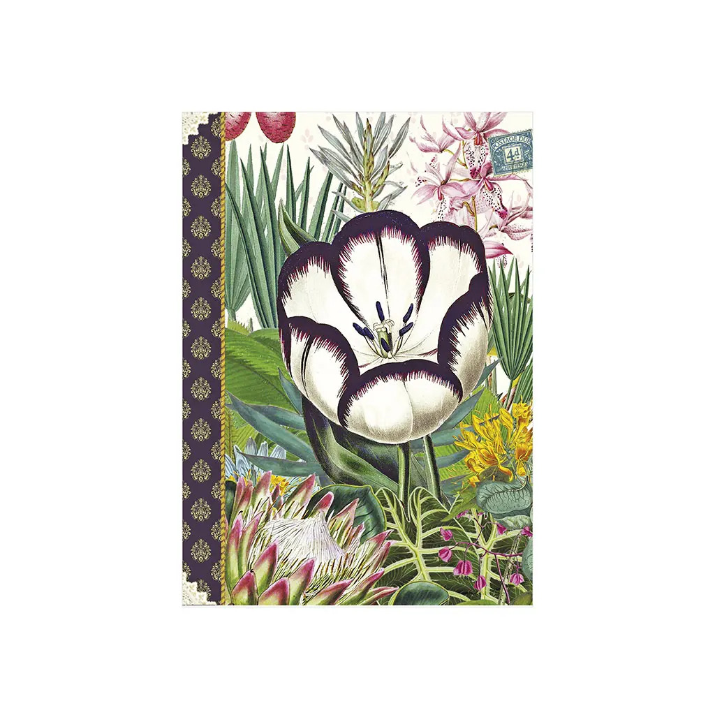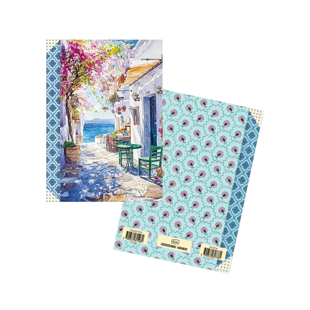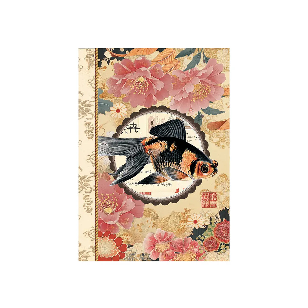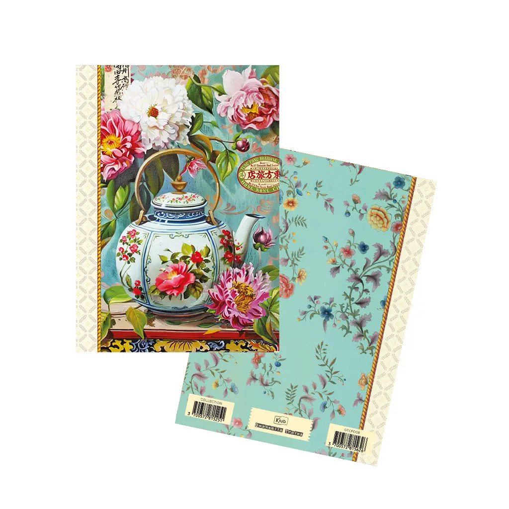 Format A6 portrait, 48 pages intérieures en 100g, décorées autour de thèmes variés : nature, motifs, textures…