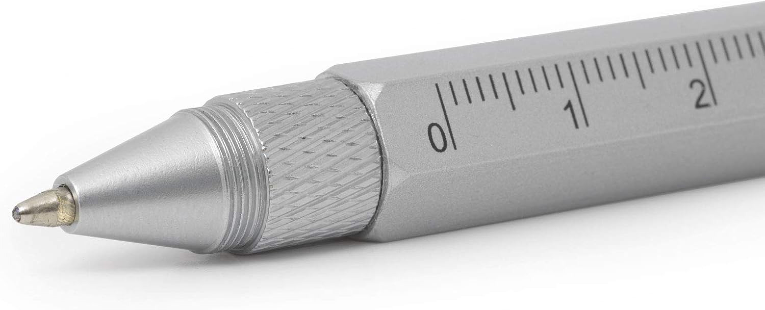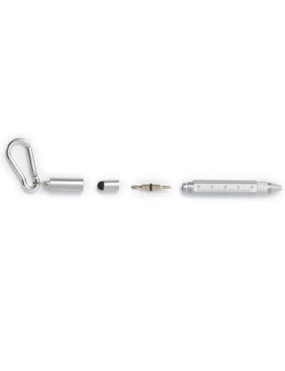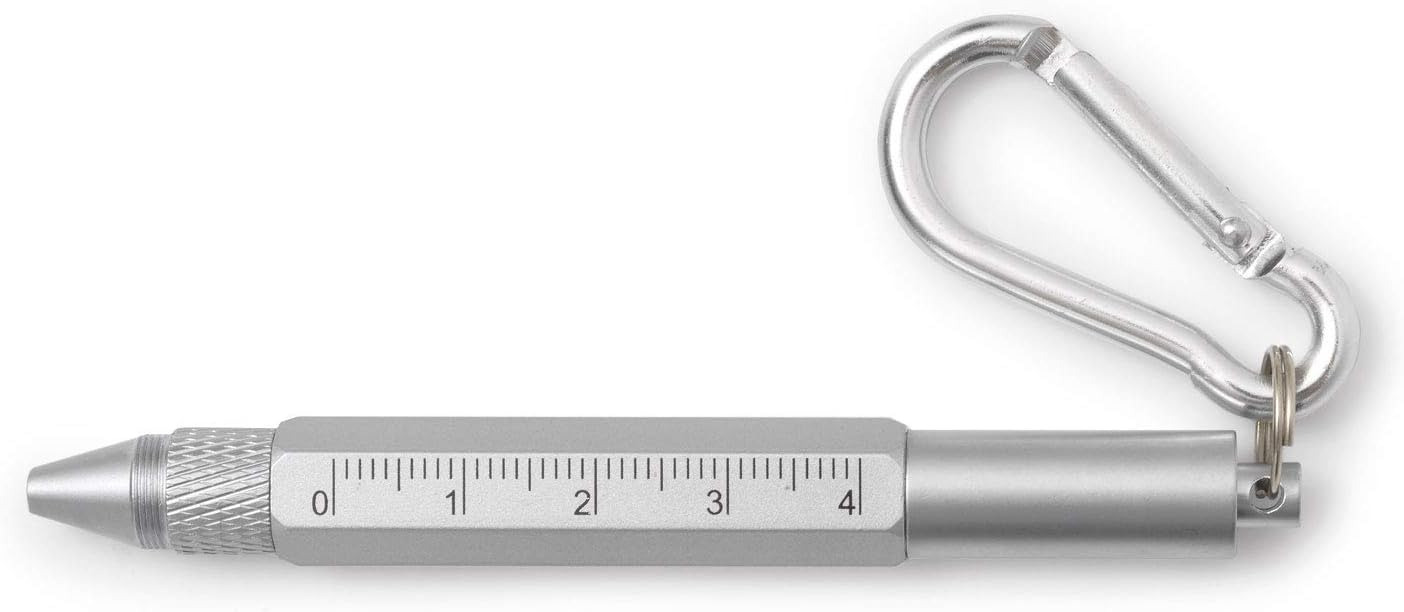 Êtes-vous un as du bricolage ? Dans votre boîte à outils, vous ne pouvez pas manquer le mini stylo multifonction de Legami ! Idéal pour les petits travaux, le mini stylo sera en mesure de répondre à tous vos besoins. 5 fonctions d'utilisation : – Stylo à bille à encre noire, pointe 1,0 mm – Règle en centimètres, positionnée sur le côté du stylo – En dévissant le bouchon avec le caoutchouc vous trouverez un tournevis à double pointe : plat et Phillips (pointe plate : 1 mm ; pointe Phillips : PH00) – Caoutchouc tactile – Porte-clés mousqueton pour l'avoir toujours avec vous même en dehors de la maison. Matériau : acier, aluminium