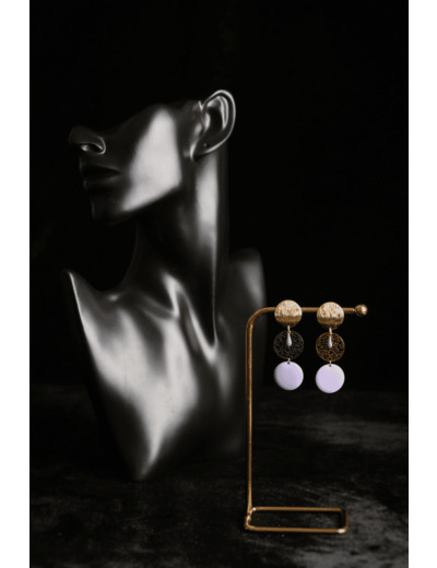 Paire de boucles d'oreilles faite d'acier inoxydable et sequins émaillés