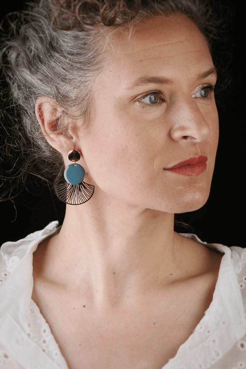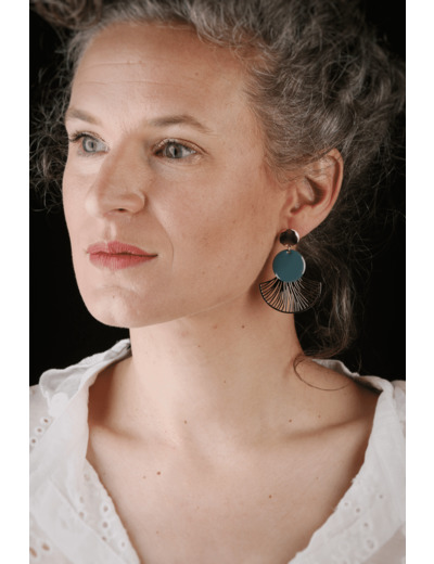 Paire de boucles d'oreilles faite d'acier inoxydable et sequins émaillés