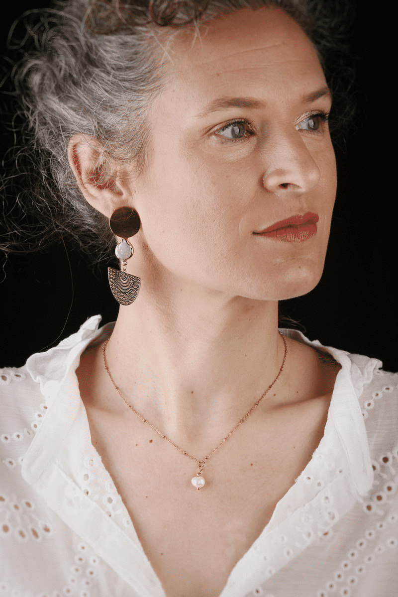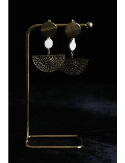 Paire de boucles d'oreilles faite d'acier inoxydable et de perles d'eau douce