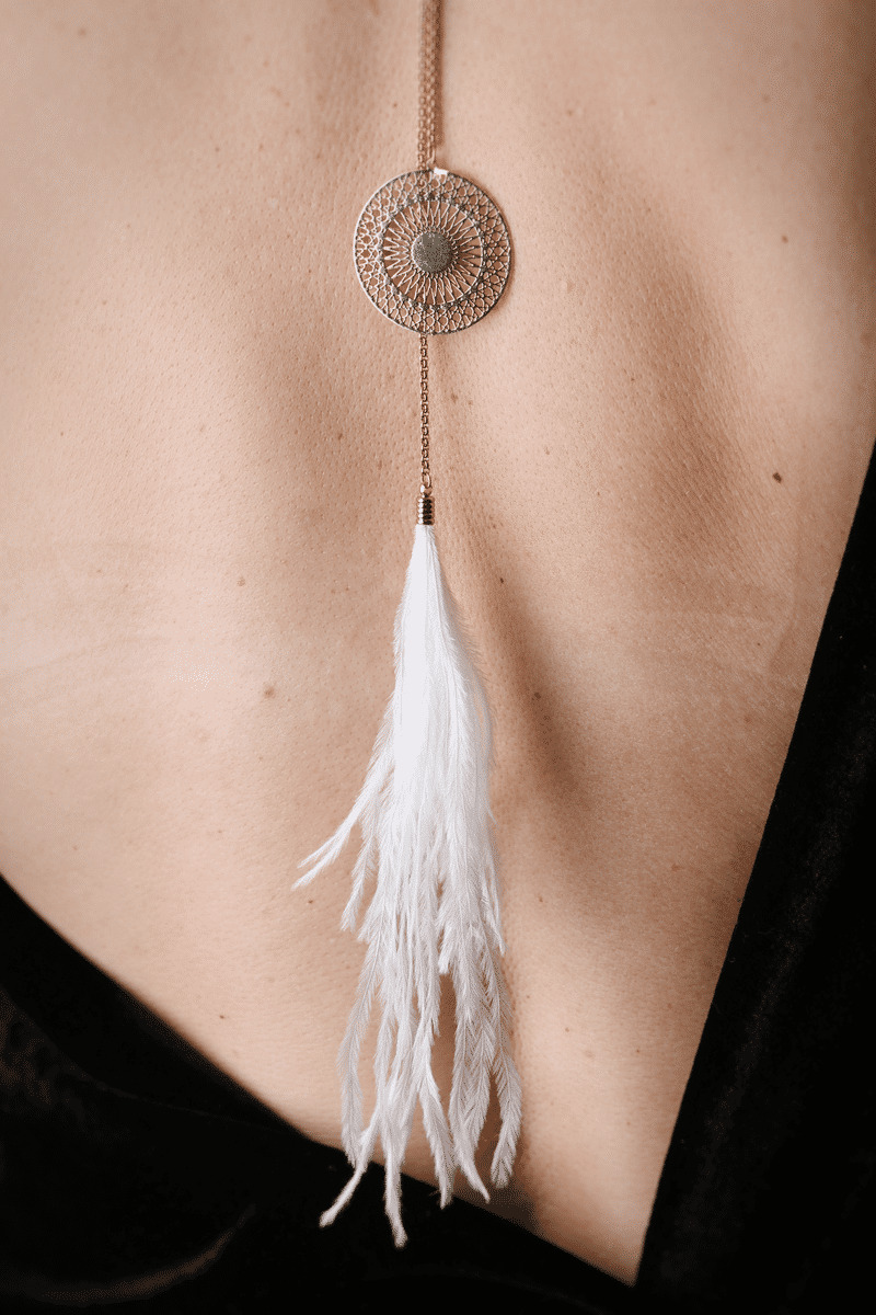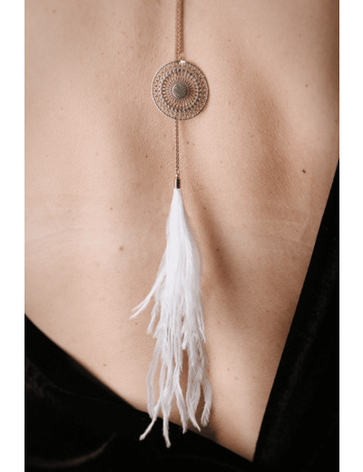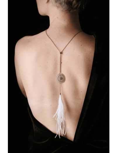 Il est composé d'éléments couleurs or, d'une rosace, et d'une plume d'autruche