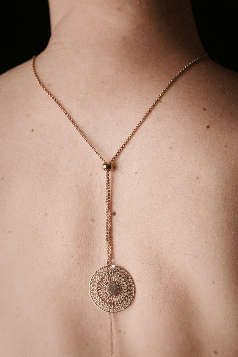 Le perle centrale coulisse et vous permet de régler la longueur de votre collier comme vous voulez