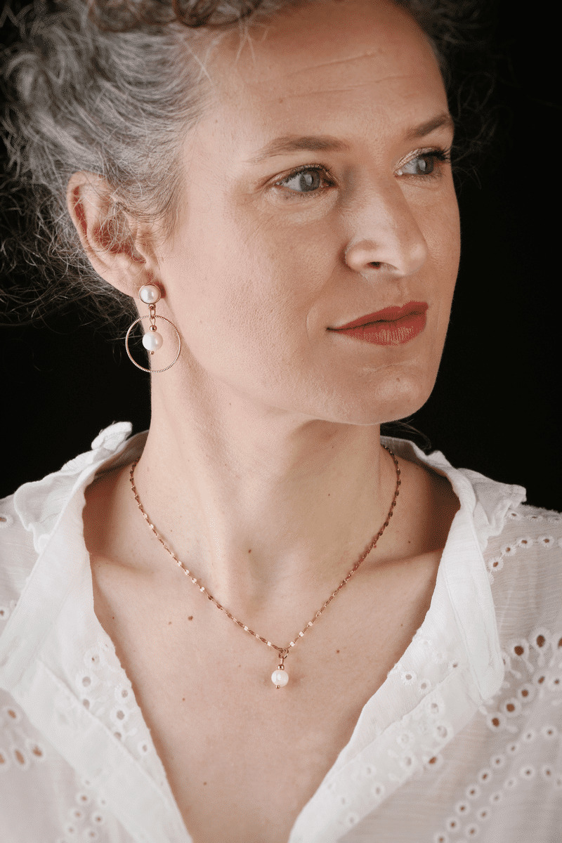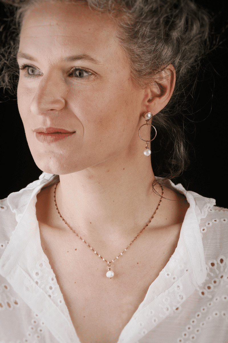 Il est composé d'éléments couleurs or et d'une perle d'eau douce
